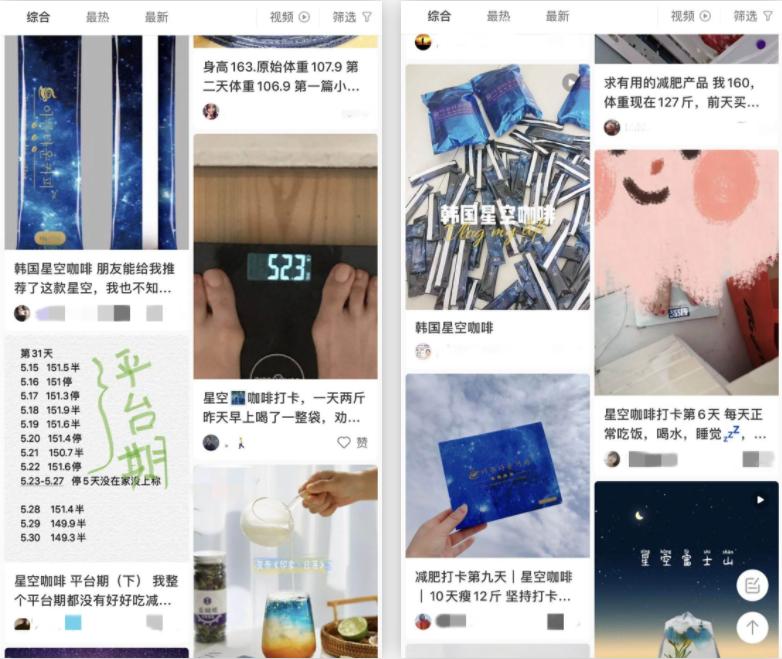 在多个社交平台上可以看到,不少网友在发帖推荐“星空减肥咖啡”,一些据称正在喝的人每天都会打卡分享自己的“疗效”。