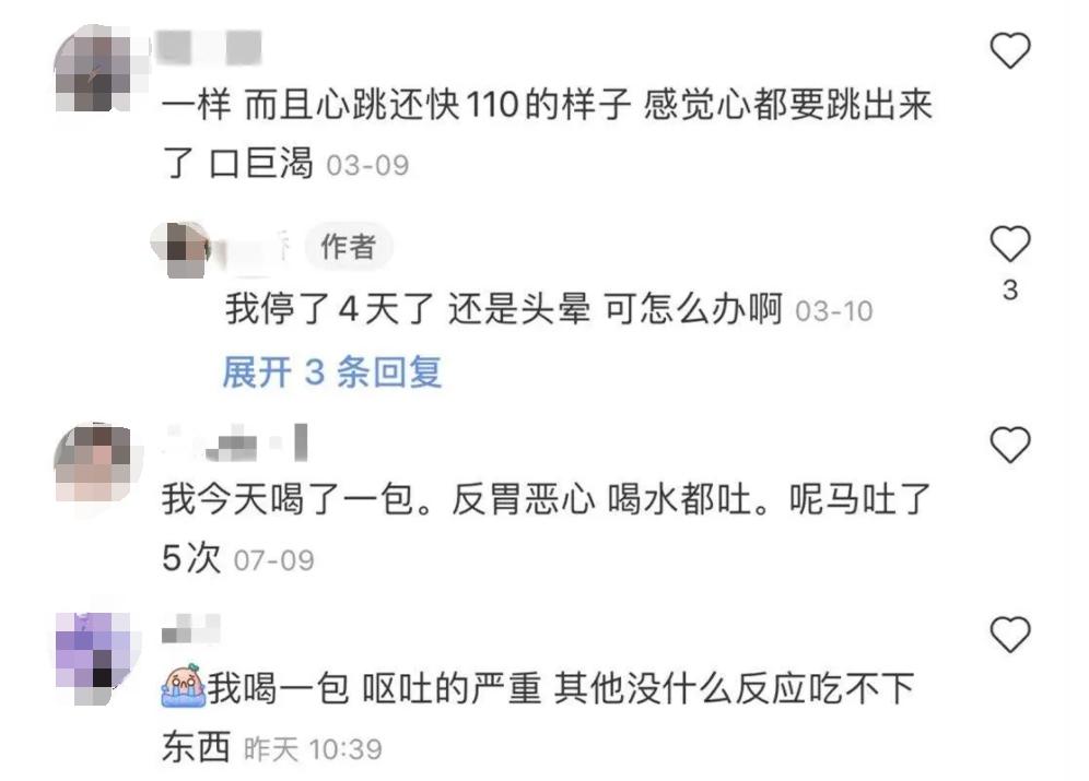 没想到,小许喝了后感到“口干舌燥,头晕眼花,恶心,身体无力,晚上还失眠。连续三天吃下来,心跳很快还出虚汗,血压也升高了!”