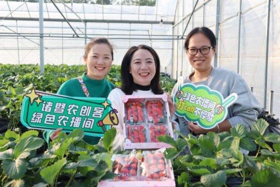 双十一期间,诸暨农创客绿色农播间开启直播月活动。图为直播分队走进姚江镇草莓园。(受访者供图)“从‘养在深闺人未识’,到亮相市场卖得俏、卖得远,特色农产品搭上电商快车,敲开了农民增收的致富门。”诸暨市木米女电子商务有限公司总经理、市农创客发展联合会副会长楼畅说,在线上大声叫卖的同时,也应正视农产品“触网”后遇到的发展瓶颈,如农产品标准化难建立、溯源体系不完善、个性化品牌不明显等问题。
