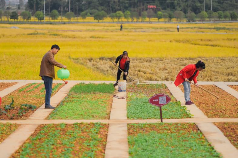 这里家家户户的菜园集中连片菜地与农田自然相连
