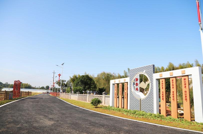 兰春塘地貌呈环形沿线点缀着党建文化走廊、