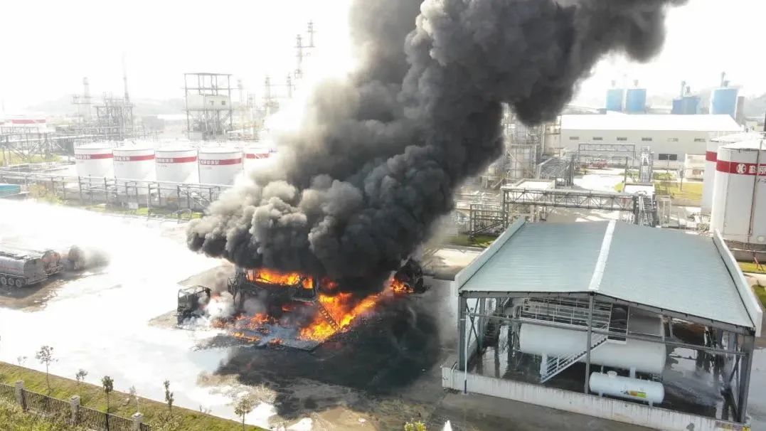 据了解,起火建筑为单层钢混结构的装卸台,总建筑面积100平方米,起火部位位于装卸台,该建筑东面为空地、南面和西面为储罐、北面为道路,火灾过火面积约80平方米,燃烧物质为油罐车及油品。