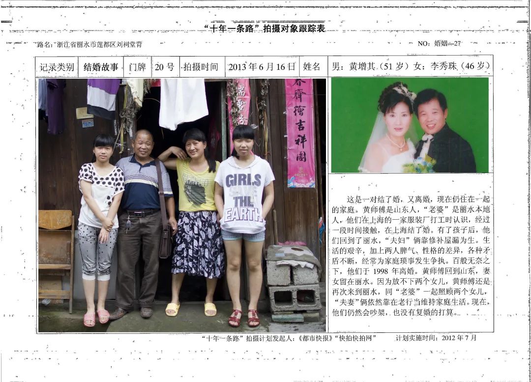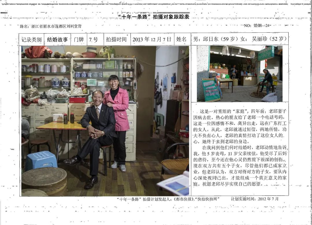 十年一条路是一个大项目,后来我把它再细化。比如讲结婚故事,我就从结婚这个切口,了解很多人的半生。按照我这个年龄不像女同志,不会落泪,我在做这些田野调查的时候,很多次真的热泪盈眶。将心比心,他已经完全信任你了,所以会把自己的内心向你倾诉,所以我给他拍大量照片,他也愿意。