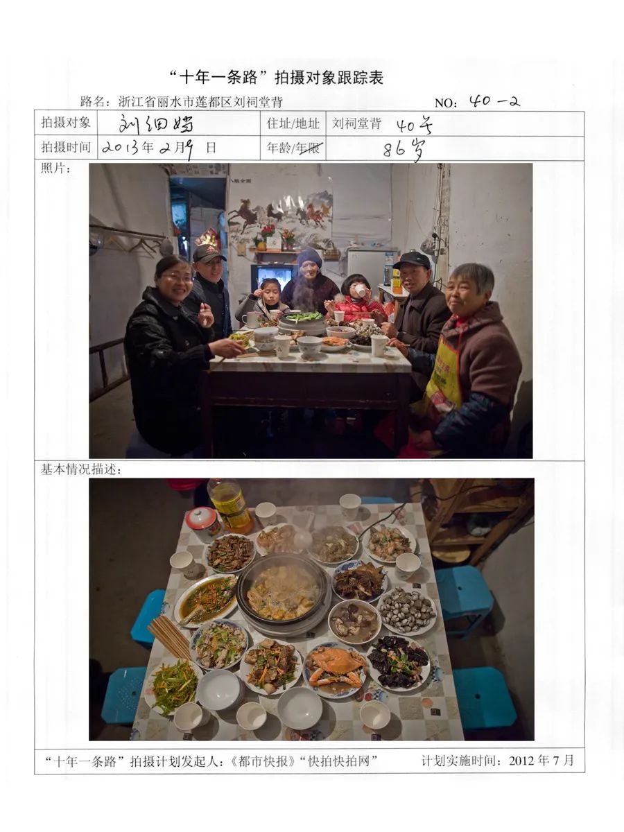 2012年7月,“快拍快拍”网发起“十年拍一条路”的计划,我毫不犹豫地选择了她。重走这条路,我看到一副衰败的景象:行人稀少、老店关闭,住在这里的大都是老人和外来务工者。2020年9月,丽水市政府发布了刘祠堂背改造计划,大部分房屋将被国有公司收购,通过改造这里将成为新的旅游街区。