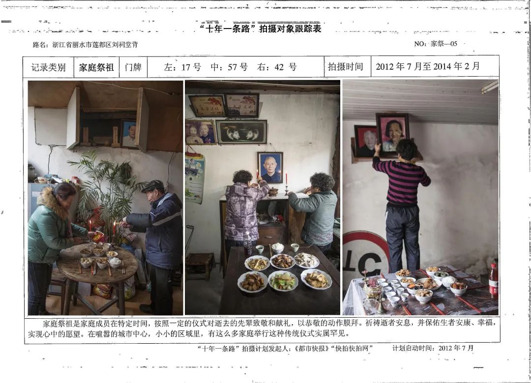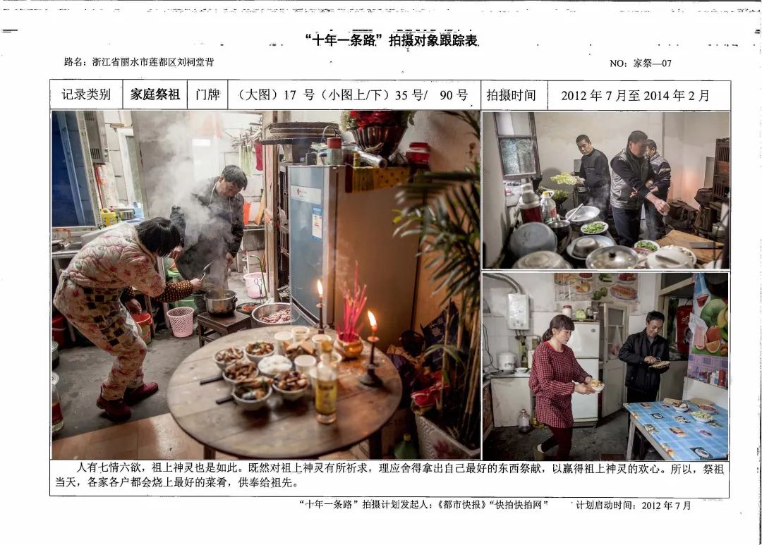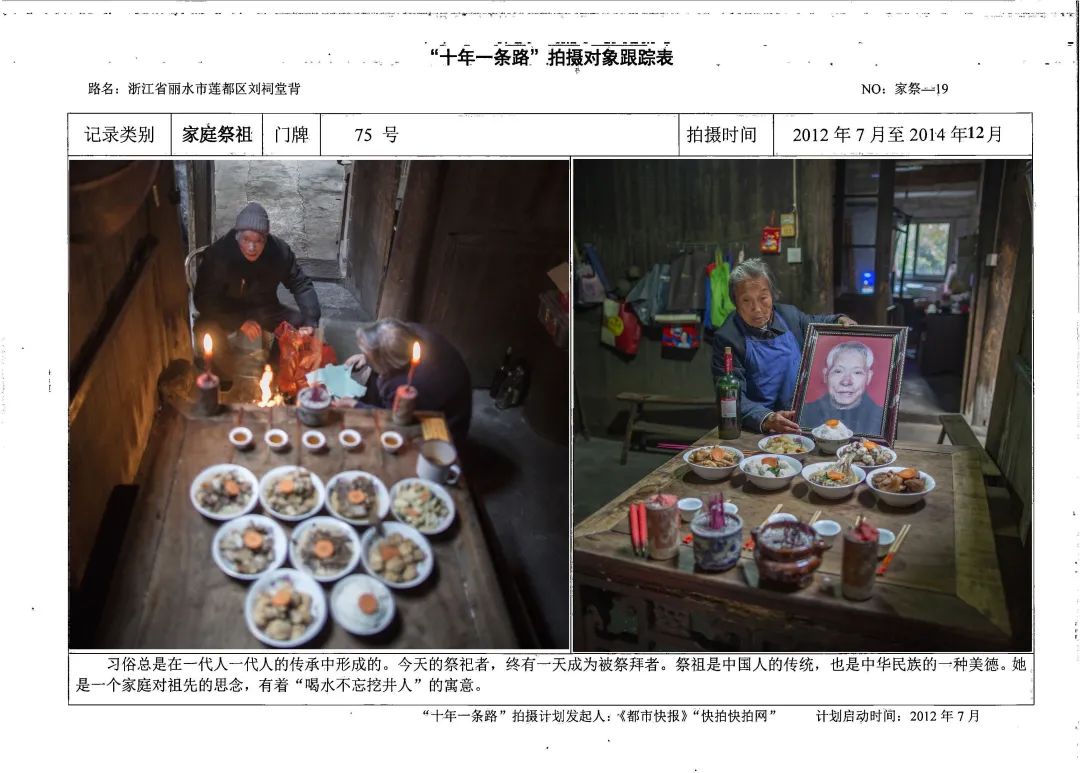 再比如讲家庭祭祀,我不是真正的丽水人,很多风土人情原来不知道。到了刘祠堂背,才知道这个家庭祭祀不是烧烧香拜拜,它是有一套流程有讲究的。我就用图片故事的方式把它拍下来。这个项目周期十年,第一次我不懂没拍到,那就第二次再去拍。