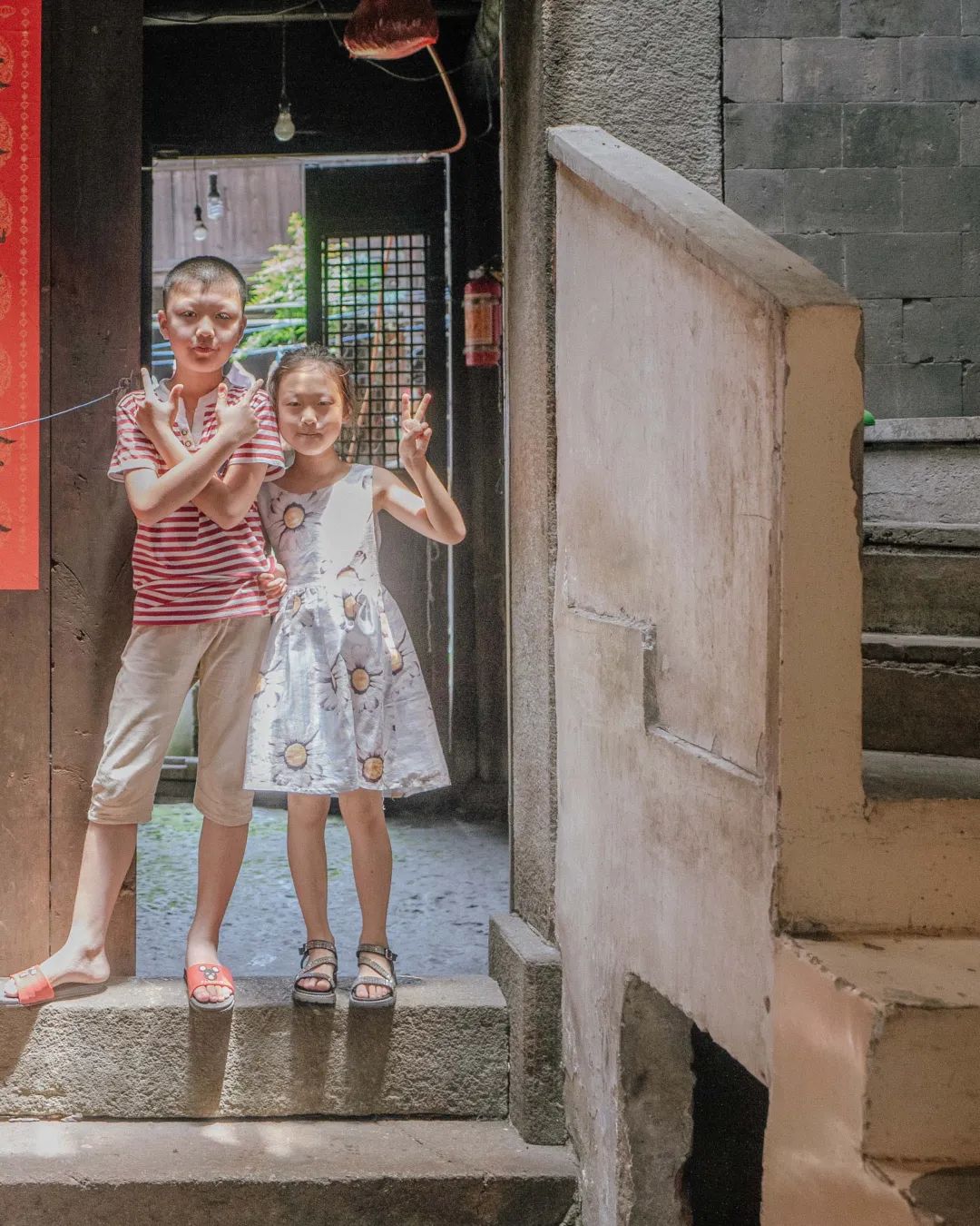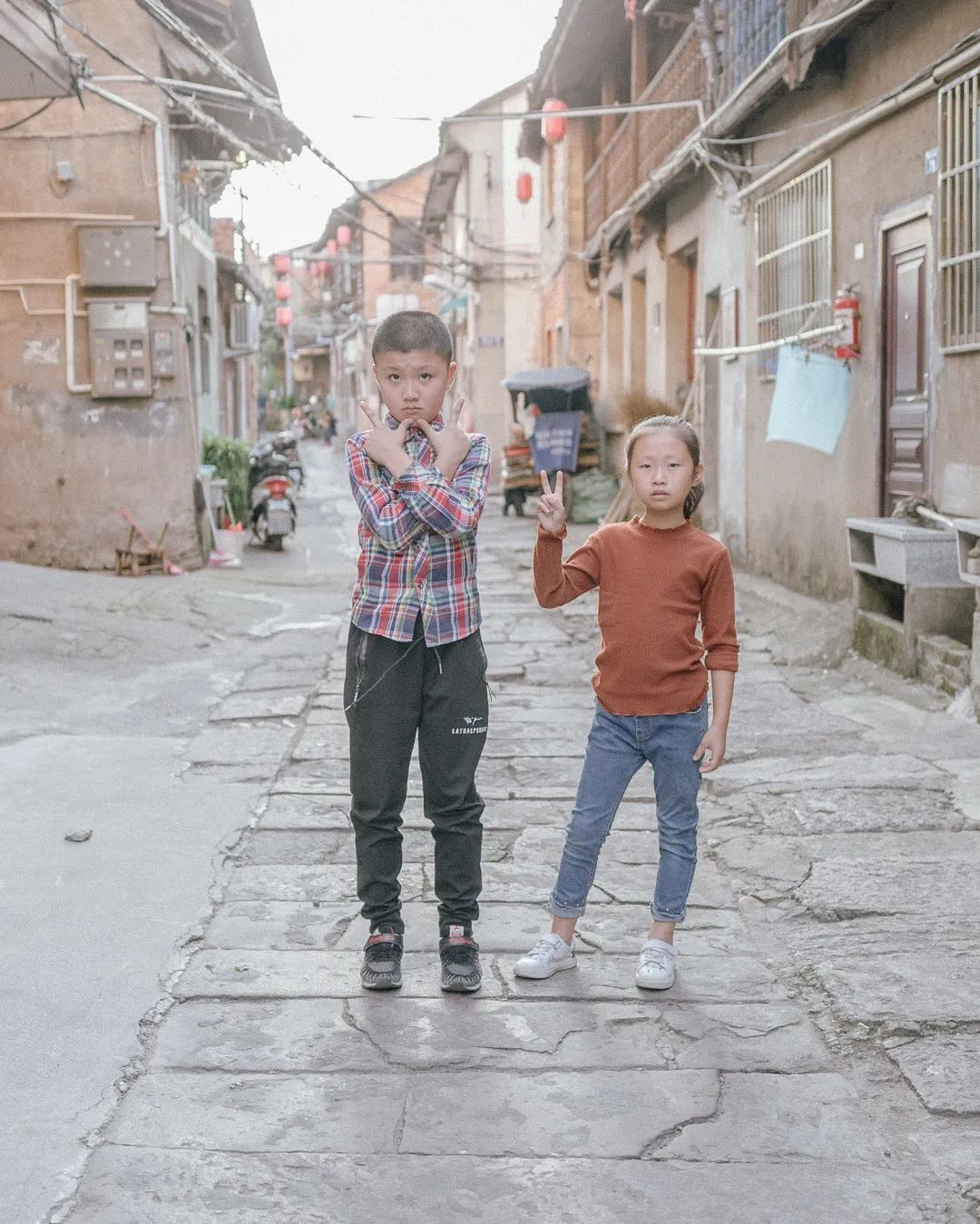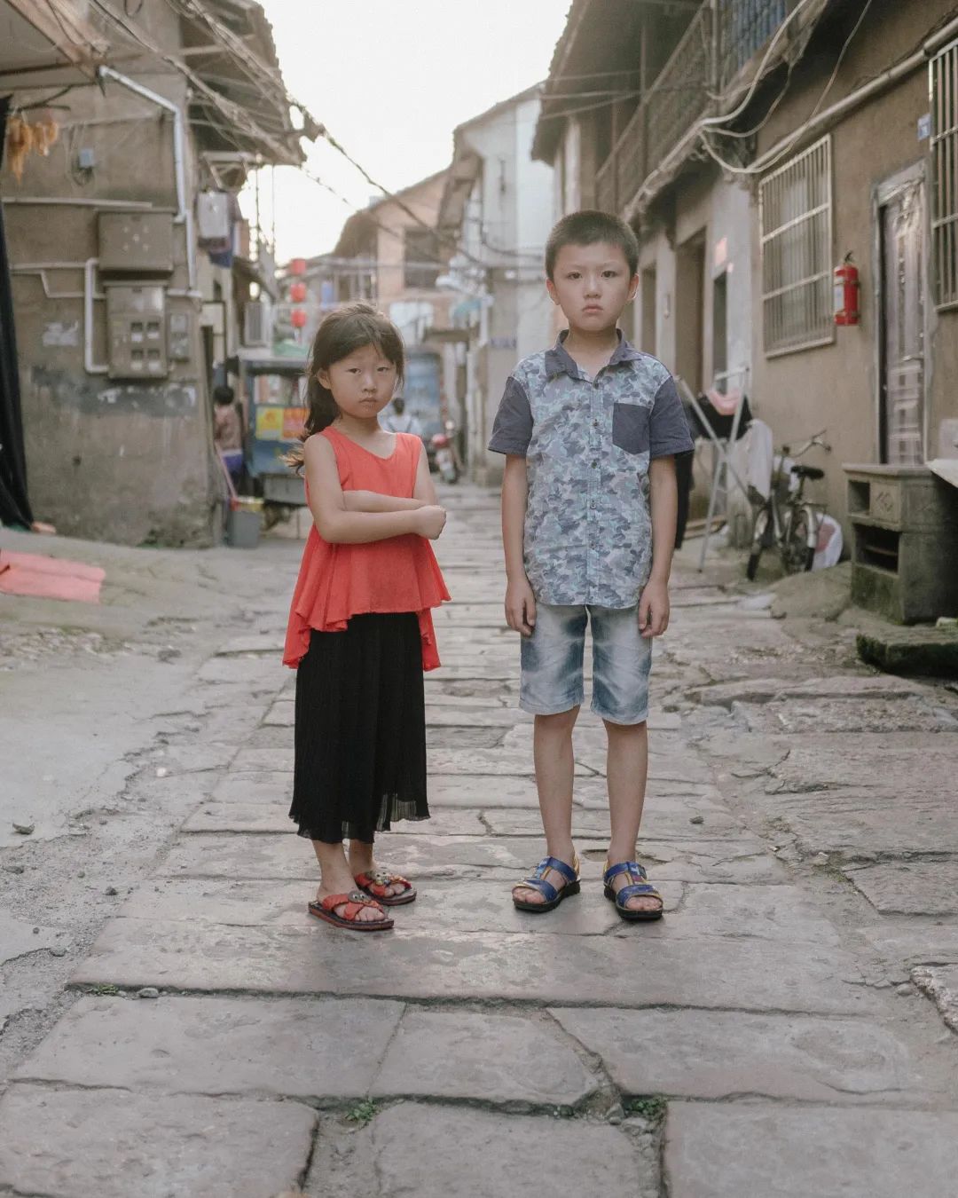 (2012年)这是一个十年之约。2012年,我刚刚开始“十年一条路”项目,在刘祠堂背遇到这对表兄妹,我为他们摁下第一张照片,他们幼稚地问我:“叔叔,你以后都能给我们拍照吗?”,我说:“我每年给你们拍一张吧!”,“那我们拉钩,说话算数哦”,从此,我就按照约定,每年给他们拍一张照片。如今,我从“叔叔”变成了“外公”,他们也读小学六年级了,我们的约定还在继续。