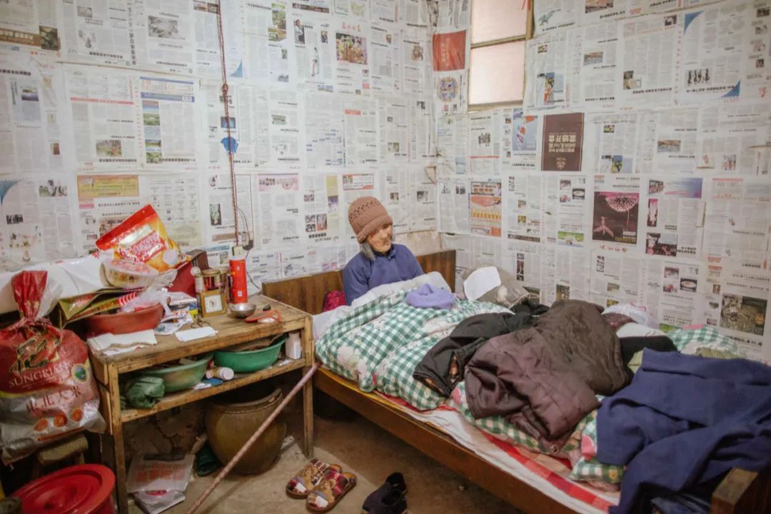 《逝者》是我拍摄10年间刘祠堂背陆续离世的居民。杨有天、刘细㜭、陈翠莲、陈龙生、赖柄新、张雪华、麻增毫、邹人凤、张春花、何槛诚和戴玉翠夫妇…… 十年间,刘祠堂背先后有23位小巷居民去世,他们生前都是我的拍摄对象,也是我的朋友。无论是无疾而终,还是意外逝去,都值得尊重和纪念。在布展的时候,为了消解展厅弥漫的悲伤气息,我们将整个房间贴满了10年前至今的丽水本地的《处州晚报》。如果你足够细心会发现,在其中一张老人的照片中,她的房间,就贴满了报纸。而报纸本身也成了展览的一部分,代表了在他们消逝的十年间,周边一直变化着的世界。