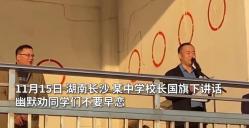 ▲11月15日,湖南长沙。望城区第一中学校长国旗下讲话,幽默劝同学们不要早恋走红。“下手太早,质量不好;大学再找,白头偕老。” 刘宇校长希望女生不要为低成本的付出感动,“倒杯水、买杯奶茶,这不是什么稀缺物种”,金句频出,引得台下学生拍手叫好。校长讲话走红网络后,获得不少家长点赞,许多网友纷纷留言“要发给我家孩子看看”。