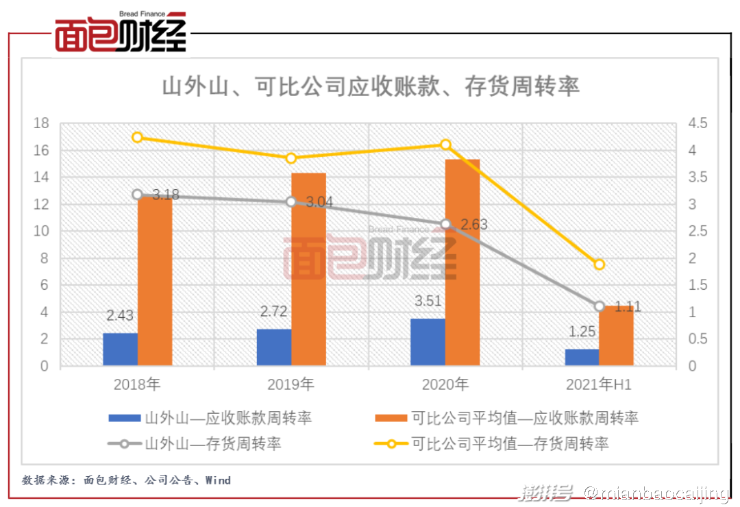 相较同行业可比公司,山外山的应收账款周转率、存货周转率也明显较低。