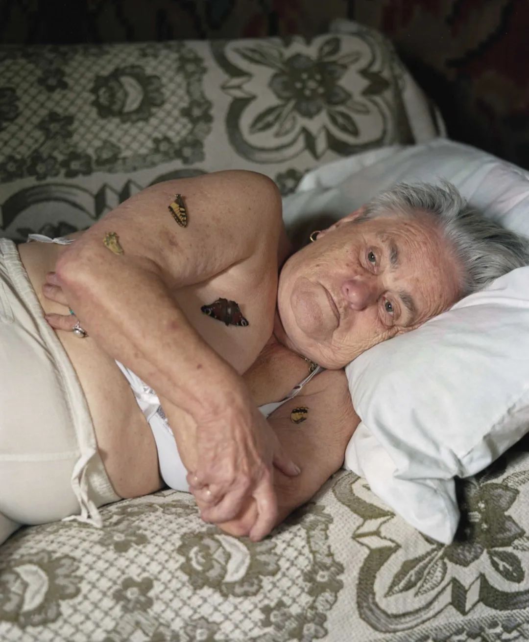 Z:你提到《藏身之所》中,外祖母的肖像是你们两人合作的成果,你们合作的过程是怎样的?比如放在你外祖母身上的那些树根和贝壳,这些想法从哪里来?以及你的外祖母对于你将照片发表出来有什么看法?