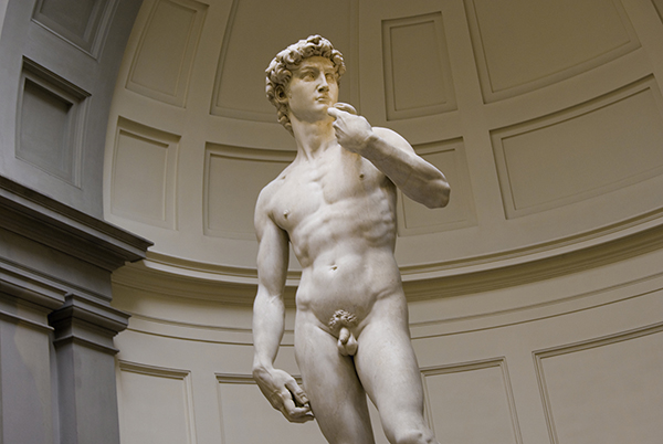 那是不是重一些的就会更有垂坠感,位置更低呢?非也,通常来说反而是比较轻的左侧睾丸位置略低,而右侧略高。不信请看著名帅哥——《大卫》雕像。