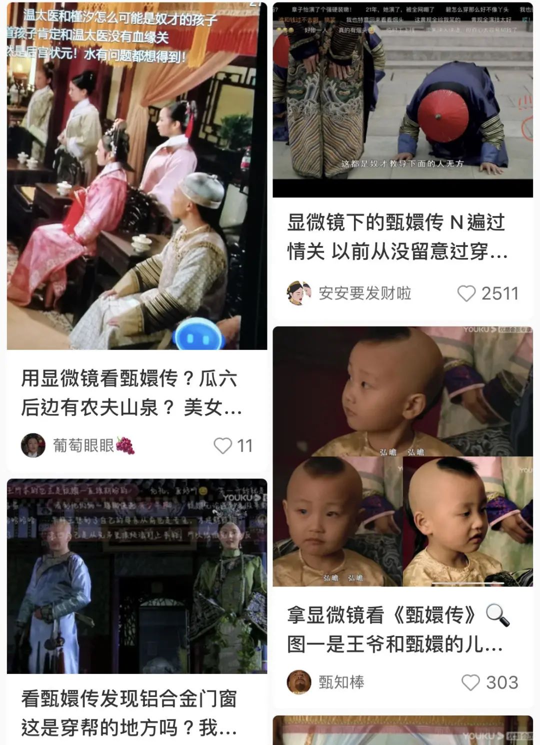 而其他社交平台则乐于带着显微镜看《甄嬛传》。