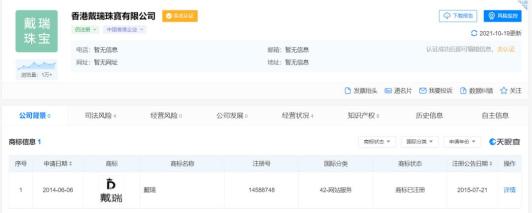 香港戴瑞珠宝集团信息。来源/天眼查2018~2019年,迪阿股份有4批次(合计5件货品)在抽检过程中测出贵金属含量低于合同约定标准。之后,还有8批次(合计50件货品)在检测过程中出现镶嵌物料并非天然钻石,而是合成石的情况。