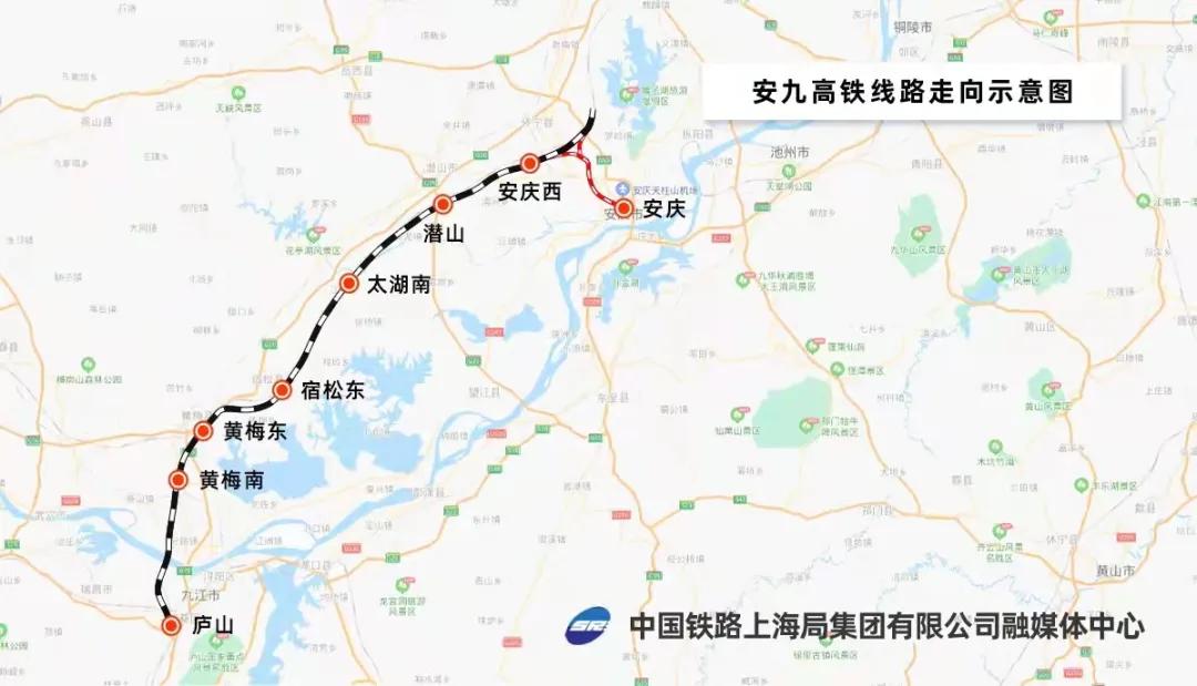 安九高铁是国家中长期铁路网规划“八纵八横”高速铁路主要通道京港通道的重要组成部分,起于安徽省安庆市,经湖北省黄梅县,终到江西省九江市,正线全长约171公里,设计时速350公里,全线设安庆西、潜山、太湖南、宿松东、黄梅东、黄梅南、庐山等7座车站。