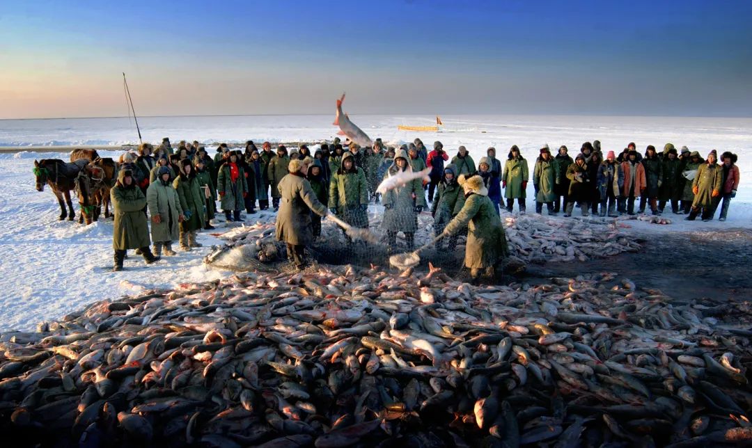 吉林的冬捕享有盛名。醒网、凿冰、撒网,数万斤鲜鱼脱冰而出,极富民族特色。刚捕捞上来的鱼类,一会儿就会冻硬,表面有一层冰,能牢牢锁住鲜味。解冻后,和新鲜的鱼没什么两样。