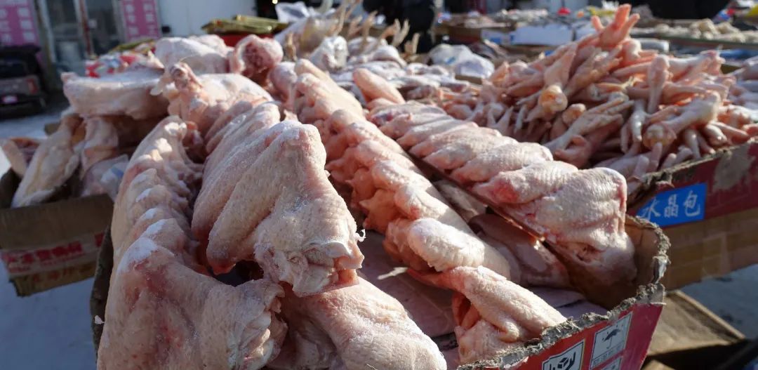 大街小巷路边商贩的冻货摊位上,除了各式品种的冻鱼外,还有冻鸡、冻鹅、冻虾等,应有尽有,场面也颇为壮观。