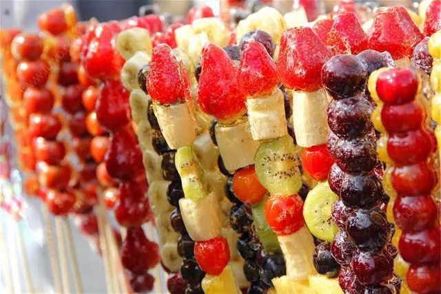 现在冰糖葫芦的品种已经不仅仅局限于山楂,更不局限于水果了,今年全国各地出现了不少奇葩糖葫芦,辣椒、甘蔗、秋葵……万物皆可被做成“冰糖葫芦”。敢于尝试的小伙伴,不妨把味道告诉小吉。
