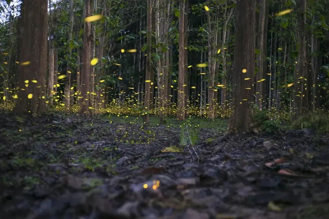 夜晚便被数以万计萤火虫点缀,天上星辰闪烁,地上萤火围绕,如梦似幻。幸运的话还能看见阿凡达世界中的发光蘑菇哦!