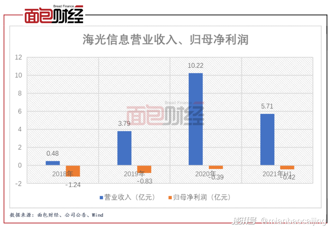海光信息的归母净利润持续为负,但亏损幅度有所收窄。2021年上半年,公司实现营收5.71亿元、归母净利润亏损0.42亿元。