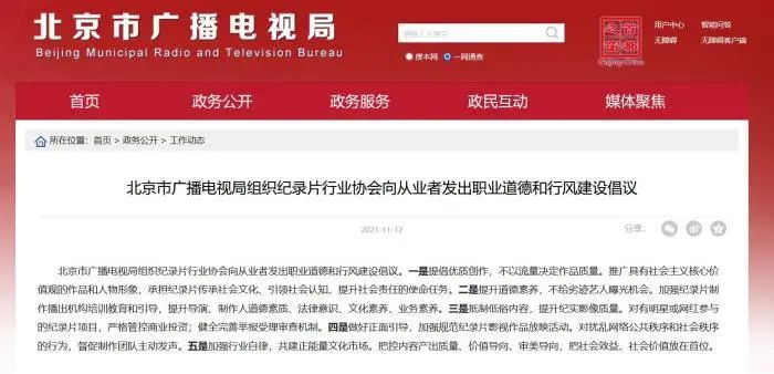 11月12日,北京市文化和旅游局和北京市广电局也分别发声,强调演出举办单位要严格演员背景审核及选用,禁止使用违背社会主义核心价值观、公序良俗及言行违法失德失范人员。同时,要求从业者提升道德素养,不给劣迹艺人曝光机会。