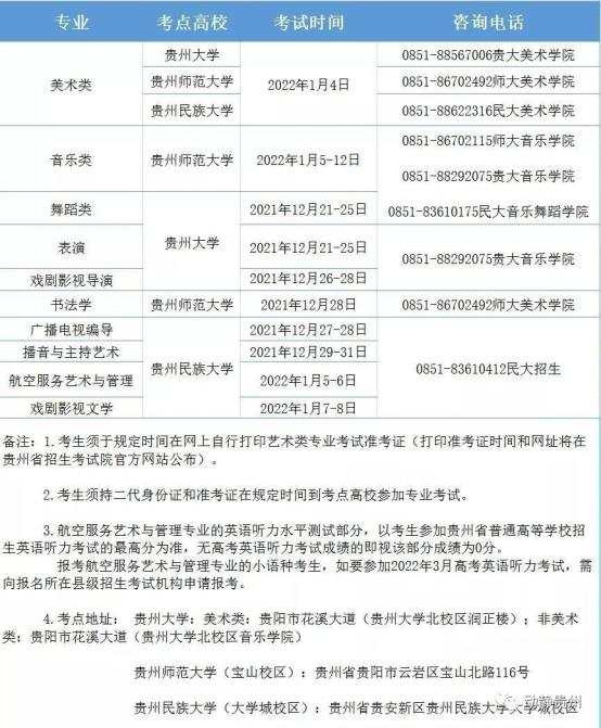 原标题:《速看!贵州2022高考艺术、体育专业考试时间与考点公布》