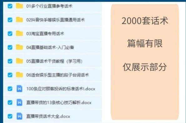 记者在某电商平台搜索“直播带货话术”“直播带货剧本”等关键词,发现相关的教学课程、话术脚本等商品有上千种,其中不少销量超过3000件。记者找到一款描述为“带货话术脚本写作”的商品,在花费18.8元购买后,对方提供了“主播基础必备的几百条话术”“带货剧本案例”等文档。文档中提到,要用大让利、大红包留住观众,在这之后不要急于卖商品,而是用大嗓门、快语速尽可能推销店铺内其余商品,给观众反复洗脑,激发购买冲动。