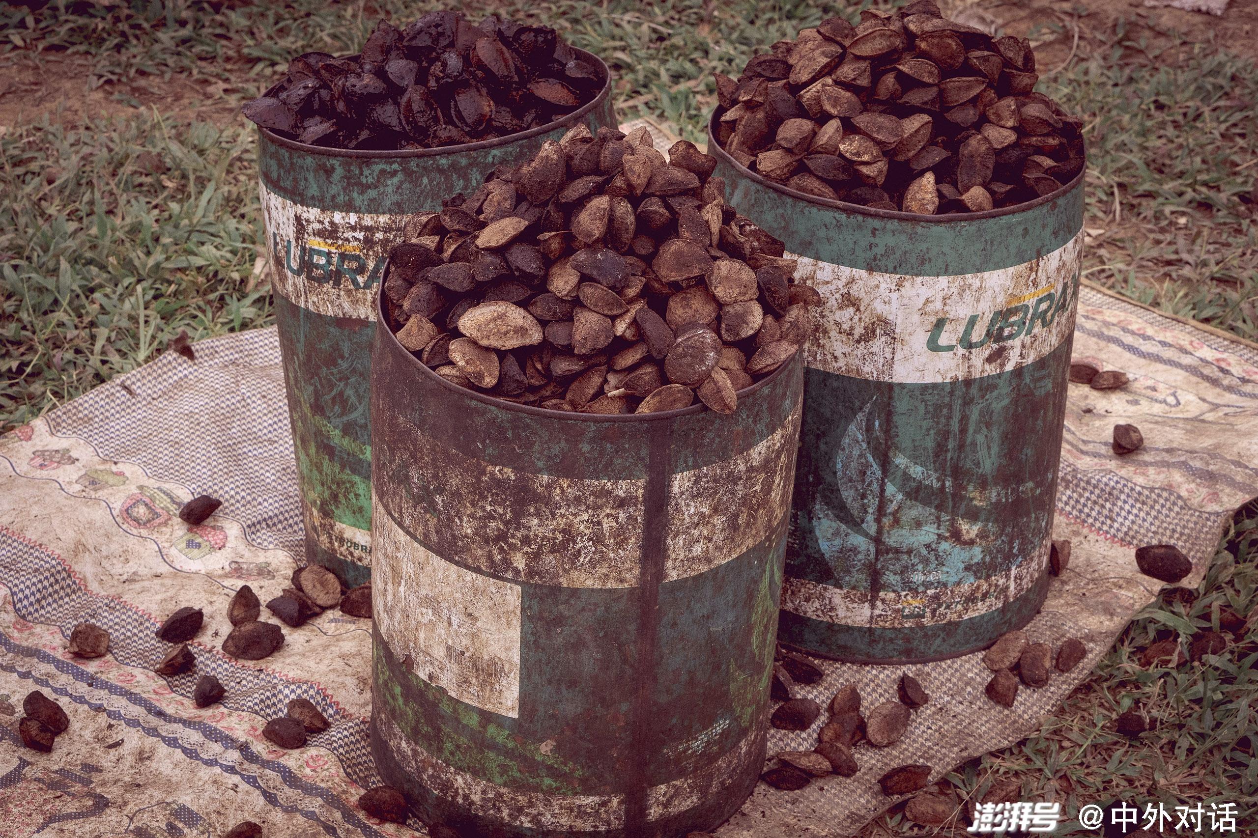 采集者以一罐约9美元的价格将坚果卖给中间商。尽管价格很低,但巴西亚马逊地区有6万户家庭靠采集巴西坚果为生。图片来源: Flávia Milhorance