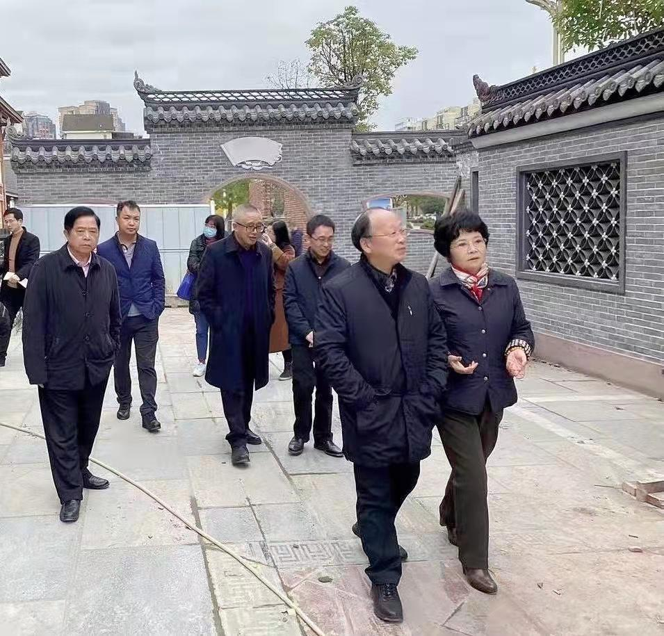 在四川省传统文化促进会会长张丽君、成都市圣沅房产开发公司董事长李元庆等人陪同下,李后强等调研了唐人街唐风蜀韵风情区建设情况,参观了贵妃馆、四相堂、公主馆、杜公堂、高公堂、唐安池馆、唐兴客馆等标志性项目。在调研中,李后强边走边问,不断地了解情况,对唐人街唐风蜀韵风情区的景观打造和文化提升项目进行了充分肯定,认为这些项目凸显了地域文化特色,增加街巷活力和文化气息,为客人赏景、休闲、消费创造了更优美的环境。