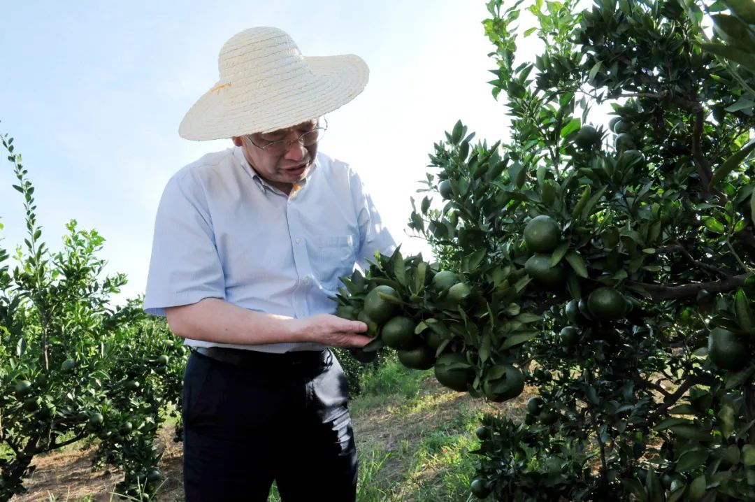 ▲邓秀新院士在宜昌察看柑橘长势(徐行 摄)2012年,邓秀新带领团队自主完成了世界上第一例芸香科植物基因组图谱——甜橙基因组图谱,打开了甜橙生命活动的“黑匣子”,破解了甜橙基因“密码”。为研究人员锁定甜橙成熟期、色泽、含糖量、产量、抗病性等农艺性状,培养出更好、更健康的品种奠定基础。