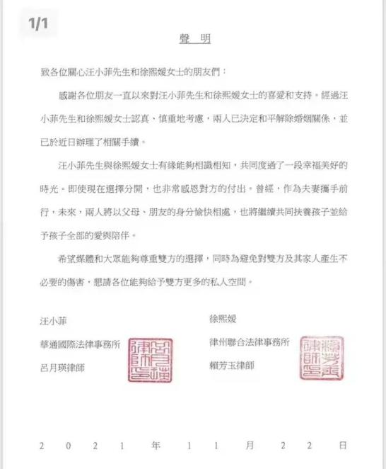 “经过汪小菲先生和徐熙媛女士认真、慎重地考虑,两人已决定和平解除婚姻关系。”11月22日,一则受律所认证的离婚声明,宣告了两人十年婚姻破裂。