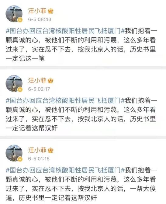 6月5日凌晨,汪小菲发微博将矛头指向台湾当地防疫部门的工作不力,致使家人在台北无疫苗可打。