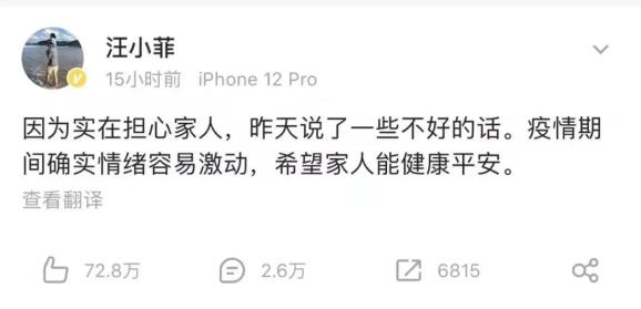当天中午,汪小菲本人对离婚传言进行回应:我不知情,并再次发微博,为自己的言论解释:因担心家人而“说了一些不好的话”。