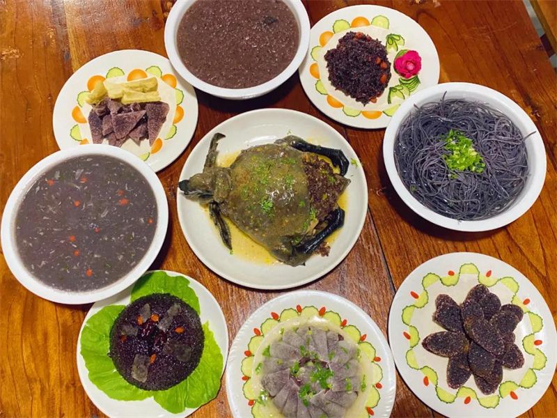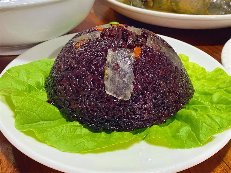 墨江被誉为“中国紫米之乡”,墨江紫米素有"米中极品"之称。紫米粒大饱满,粘性强,蒸熟后能使断米复续。紫米宴包含了紫米粑粑、紫米肠、紫米粥、紫米鸡、紫米八宝饭等菜品。生态美味的紫米宴,充溢着这方土地的人情味。