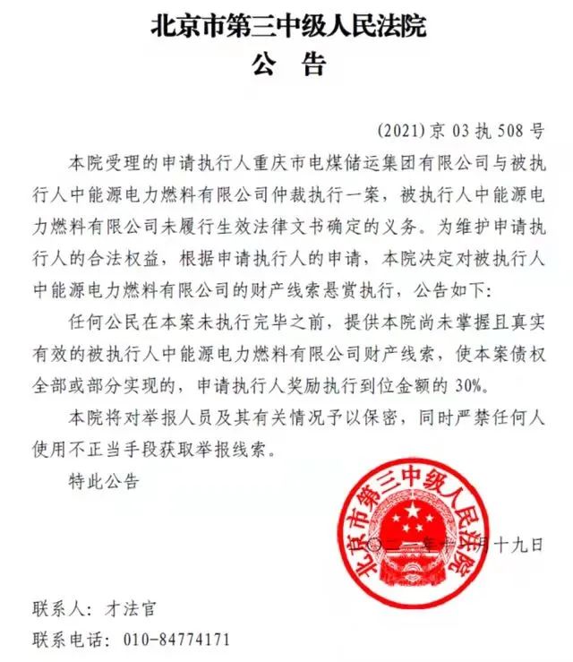 15)11月24日,北京市三中院向社会发布一则涉案件执行的悬赏公告,如有公民能提供有效线索,最高赏金将高达一亿多元。悬赏被执行人为中能源电力燃料有限公司。16)近日,安徽滁州一男子被朋友邀请到饭店吃饭,没想到朋友中途找借口开溜,男子没钱结账无奈报警。该男子称这顿饭一共花200多元,询问的民警听完忍俊不禁,另一旁的民警连连无奈摇头。涉事饭店工作人员表示,男子借钱付款后,被警方带走。