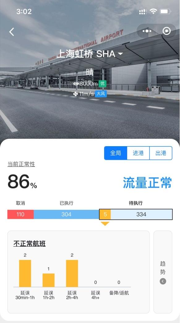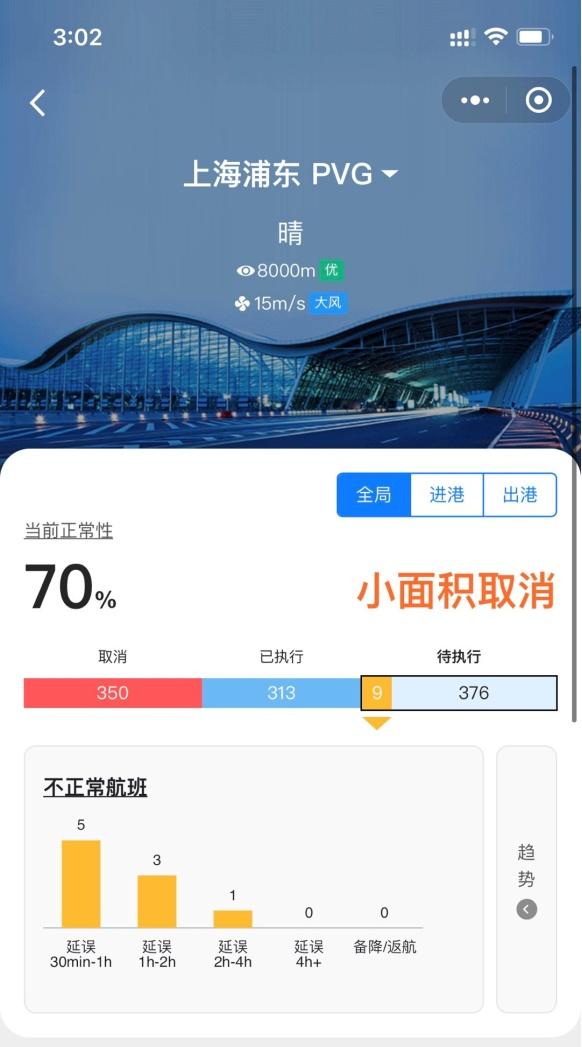 截至11月26日15:00,上海两场部分航班受影响。