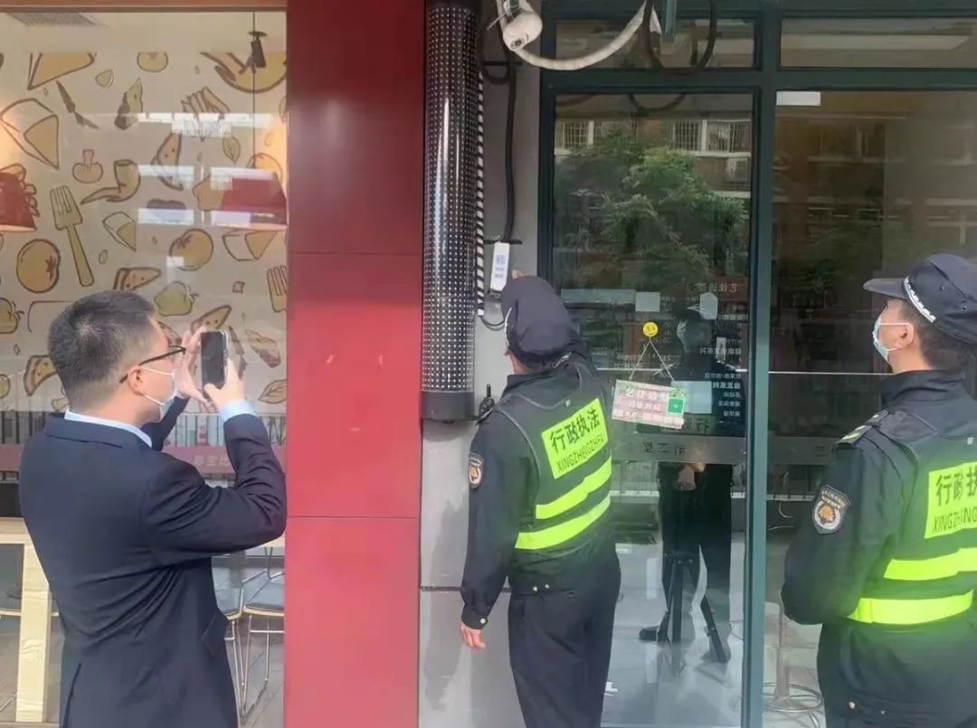 执法人员对违规店家
