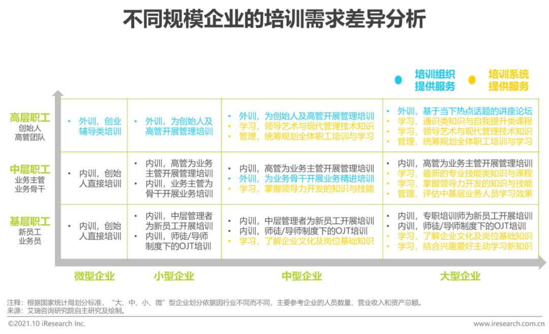 下游客户的需求取决于“企业培训”在企业经营管理过程中的战略地位,且不同企业对于培训活动的采购意愿与能力不同。对于中大型企业而言,企业培训是企业完善人才供应链的必要举措,人力资本投入对企业战略落地与绩效改进影响较大,企业需要建立完整的培训流程与体系来管理培训活动,实现从高层管理者到基层员工的全员覆盖,因此,中大型企业往往更愿意采购能够提供一体化综合培训管理服务的培训系统。从采购能力来看,企业培训是企业的一项人力资本投入,是对企业未来人才供应的提前布局,是企业的“发展性需求”,因此,经济绩效表现较好或者资本相对充裕的企业往往有更充沛的预算,“国有企业”和“上市公司”是优质客户的两大重要标签。对于中小型企业而言,有限的培训预算是影响其培训需求与采购决策的主要因素,面对激烈的行业竞争,中小企业往往会优先将资金投入到直接产生经济效益的领域,对培训产品及服务的采购意愿整体较低。对于部分培训意识较强的中小企业而言,关键岗位的高价值员工会优先得到培训,企业倾向于通过对中高层管理者、销售人员和研发人员进行针对性开发,缩短从“企业人才培养”到“经济效益提升”的转化链条,基于此,体系完善且师资优良的培训组织将迎来更多机会。