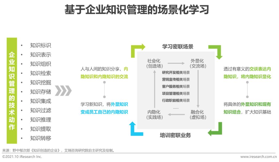 “行为改变”是实现有效培训的“最后一公里”,学习者在行为改变后,其工作中的具体问题若能被合理地解决,才能形成正反馈机制,进而从根本上提升学习者主动学习的积极性。因此,基于真实工作场景的内容设计应当成为一种主流的设计理念,未来,企业将通过知识管理系统,对具体业务场景下的碎片化经验进行序化,沉淀为结构化的知识,并通过合理的知识分享机制,让每个遇到相似问题的员工都能及时且高效地解决问题,以“学习密联场景”的方式实现“培训密联业务”。此外,相较于更加关注显示知识传递的企业培训,企业知识管理将更注重对企业隐性知识的挖掘,不断降低知识损耗,充分体现知识资产的价值。在知识管理系统的统筹之下,尚未被充分重视的员工非正式学习将被极大的优化,非正式学习中沉淀的知识细节将作为企业学习内容的重要补充,员工学习成果的转化效率将得到显著提升。