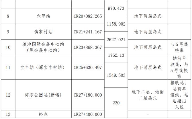 昆明地铁2号线二期项目终点由宝丰站延长至新增的海东公园站(渔村停车场),线路增加1.55公里,全长从原来的12.735公里延长至14.285公里。