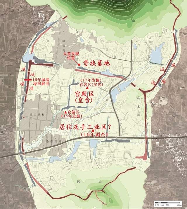 除了茶叶,其实邾国故城的考古发掘可谓成果极为丰硕,王青介绍,通过六年来的田野考古工作,考古人员可以说基本掌握了这个城址的布局特点——城址的中部偏北“皇台”这个位置应是宫城所在,“因为我们2019年在皇台的边缘发现了城墙,皇台外围到整个城址的四边城墙应是郭城”;皇台北边应该是“公墓地”,就是邾国国君和一些高级贵族埋葬的墓地。2018年—2019年在这里发掘了两座大墓;宫城的下边偏西这个地方应是仓储区,“我们2015年在这里进行了发掘,发现了大批窖穴,表明是邾国以及后来邹县由官府设立的粮仓”;郭城的其他地方主要是居民区及手工业作坊区等,“今年我们正在皇台南边靠近金水河的位置做发掘,发现了一些冶铸遗存,表明用水量较大的金属冶铸区就在河边上,当时的金水河可能与现在变动并不大”。