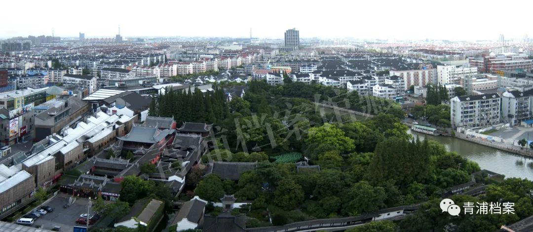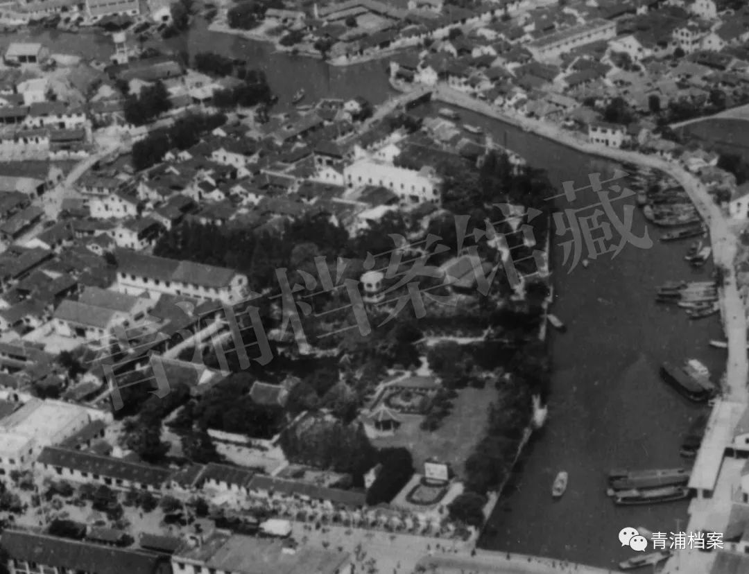 ▲曲水园鸟瞰(2014年摄)曲水园原是青浦城隍庙的附属园林。城隍庙建于明万历元年(1573年),距今已有400余年历史。初有头门、戏台、大殿、后殿、寝宫等建筑。
