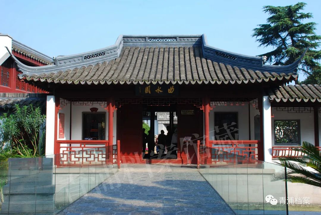 ▲曲水园中供奉圣旨的御书楼现今“曲水园”之名,是清朝嘉庆三年(1798年)改称的。因园中有一溪水贯之其间,曲流满园,水到之地,处处皆景。这年江苏学使刘云房到青浦寻访,应知县杨东屏之邀,在园中吟诗宴饮,见其美景,就借东晋王羲之《兰亭集序》中“曲水流觞”典故之意,将“灵园”改名“曲水园”。