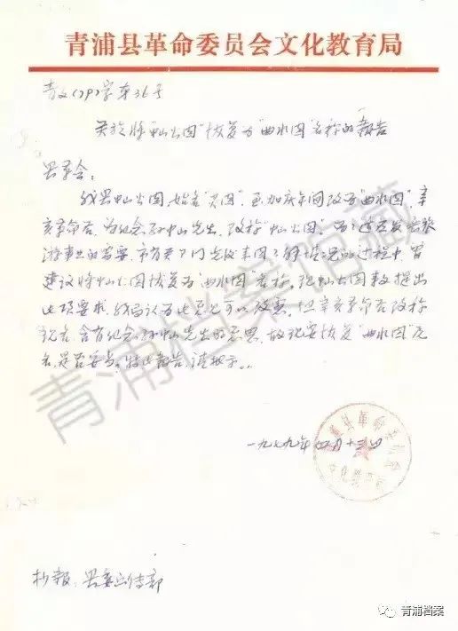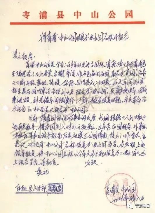 ▲1979年,将“中山公园”恢复为“曲水园”名称的报告
