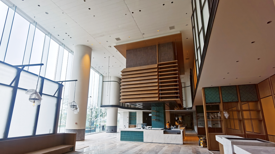 其中,室外景观绿化、酒店客房及公共区域工程建设和装修均已完成,工作人员正在加班加点进行各功能系统运行调试及家具采购安装等开业前的各项筹备工作。
