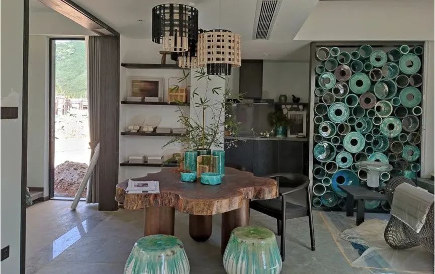 都巧妙地运用了竹子、广绿玉等