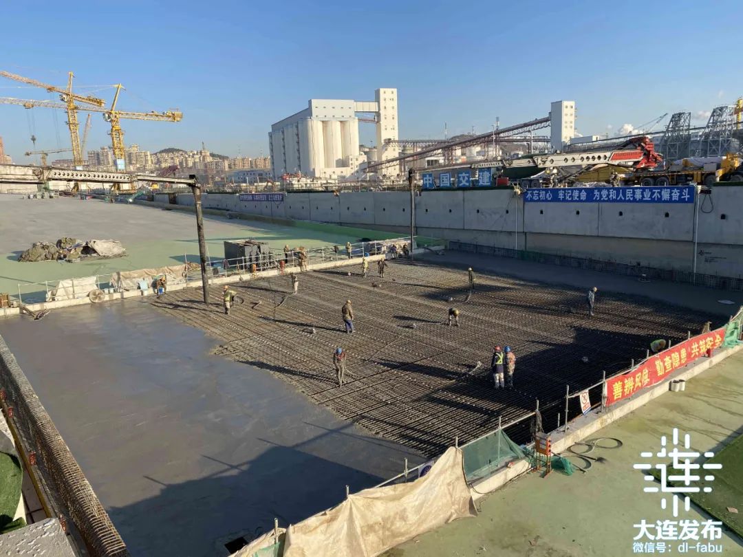 11月27日,大连湾海底隧道北岸Z11顶层混凝土浇注完成,至此北岸主体结构暗埋段施工全部完成。