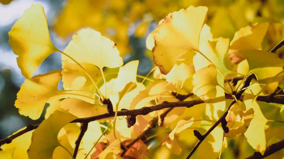 热烈之秋,灿烂秋光染透树树银杏层层渐变,调成一簇簇的绝美底色