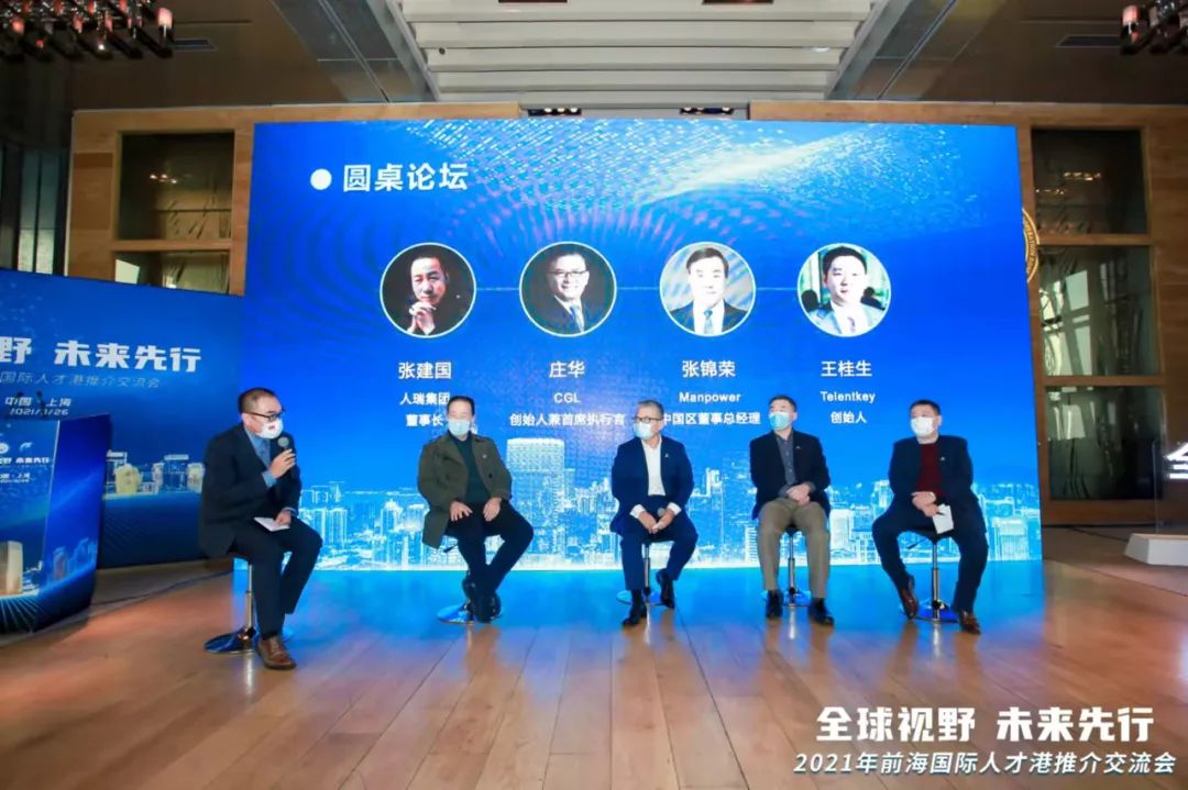前海金融管理学院副院长桂穗湘、CGL创始人兼首席执行官庄华、Manpower中国区董事总经理张锦荣、人瑞集团董事长张建国、Telentkey创始人王桂生受邀参加以“预见前海:打造全球人才首选地”为主旨的圆桌论坛,五位嘉宾分享和交流人力资源行业发展洞见,并为前海国际人才港建设建言献策。