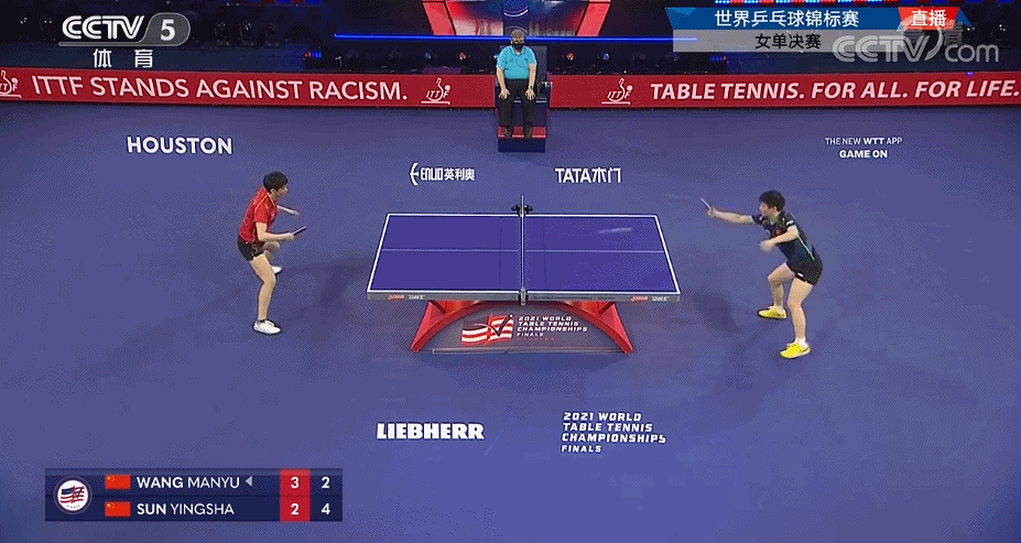 刚在女双比赛中合作赢下伊藤美诚/早田希娜,王曼昱和孙颖莎又在赛场上成为对手。
