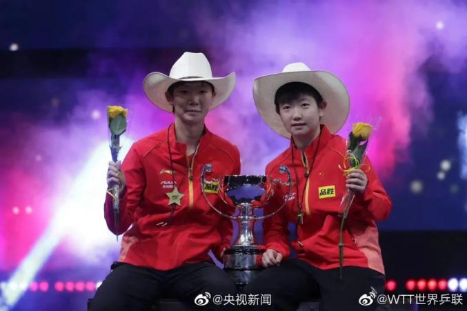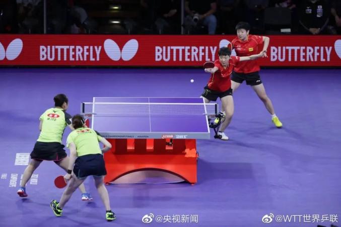 休斯敦当地时间11月29日(北京时间30日凌晨),在休斯敦世乒赛女双决赛中,中国组合孙颖莎/王曼昱以11比9、11比7、11比8,大比分3比0战胜日本组合伊藤美诚/早田希娜,夺得冠军。